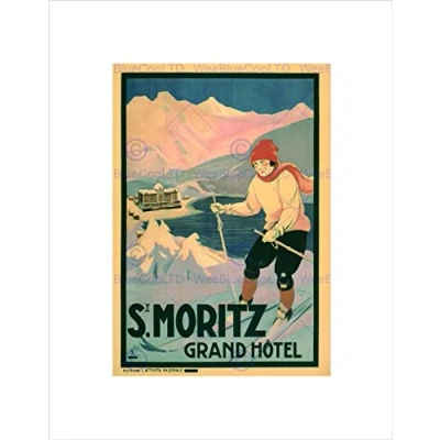 Wee Blue Coo Travel Tourism St Moritz Winter Sport Ski Snow New Wall Art Print