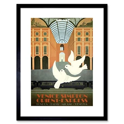 Wee Blue Coo TRAVEL TOURISM TRAIN ORIENT EXPRESS LONDON VENICE DOVE FRAMED ART PRINT B12X3404