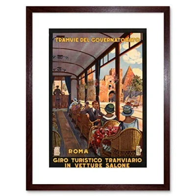 Wee Blue Coo Travel Tourism Tram Rome Italy Vintage Advertising Retro Framed Wall Art Print