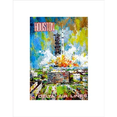 Wee Blue Coo TRAVEL TOURISM TRANSPORT AIRLINE HOUSTON ROCKET USA FRAMED ART PRINT B12X8000