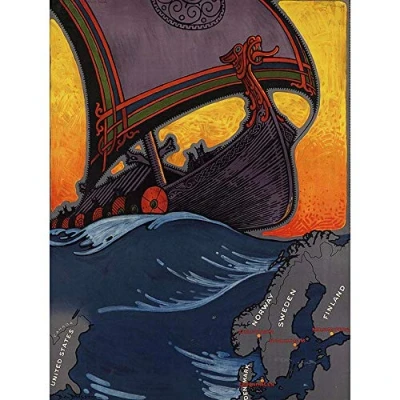 Wee Blue Coo Travel Tourism Transport Viking Longboat Scandinavia USA Art Print Poster Wall Decor 12X16 Inch