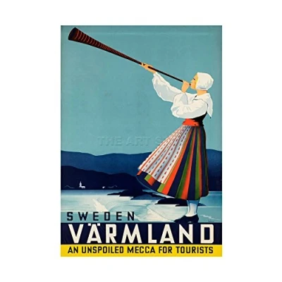 Wee Blue Coo Travel Tourism Varmland Sweden Woman Horn Picture Wall Art Print