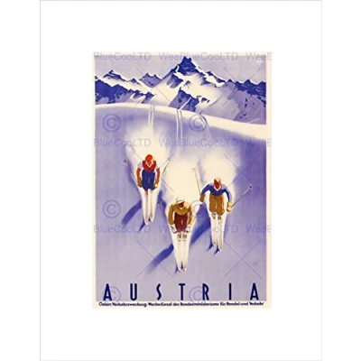 Wee Blue Coo TRAVEL TOURISM WINTER SPORT AUSTRIA SKI SNOW ALP FRAMED ART PRINT MOUNT B12X3352