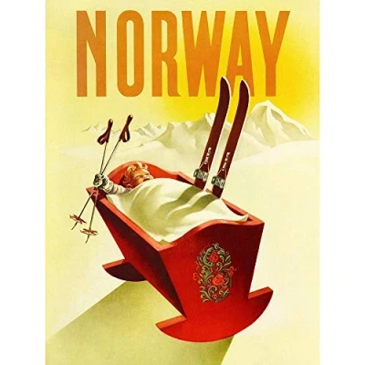 Wee Blue Coo Travel Tourism Winter Sport Norway Baby Cradle Ski Snow Art Print Poster Wall Decor 12X16 Inch