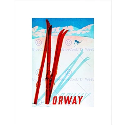 Wee Blue Coo Travel Tourism Winter Sport Ski Snow Norway Skier Wall Art Print
