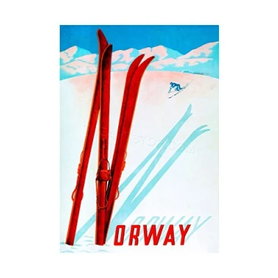 Wee Blue Coo Travel Tourism Winter Sport Ski Snow Norway Skier Wall Art Print
