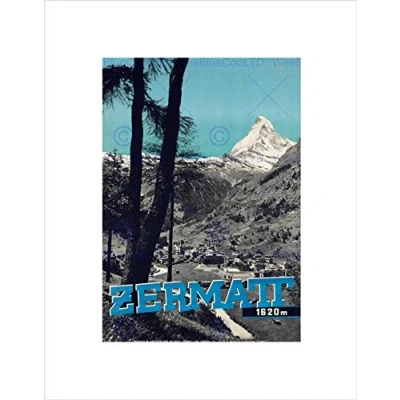 Wee Blue Coo TRAVEL TOURISM ZERMATT SWITZERLAND ALPINE MOUNTAIN FRAMED ART PRINT B12X7349