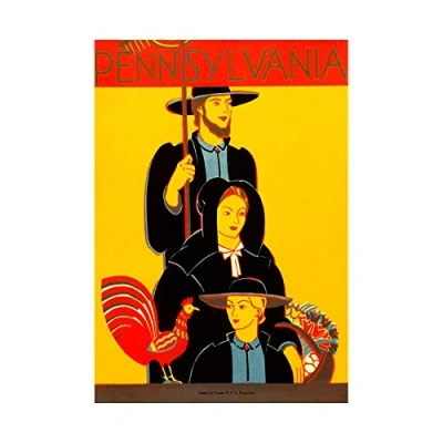 Wee Blue Coo Travel Traditional Amish Dress Rooster Pennsylvania USA Wall Art Print