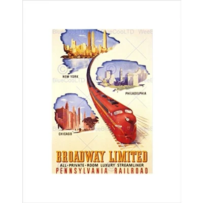Wee Blue Coo TRAVEL TRAIN RAIL NEW YORK CHICAGO PHILADELPHIA FRAMED ART PRINT B12X10351