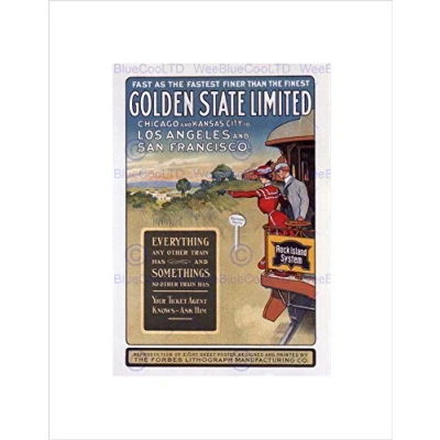 Wee Blue Coo TRAVEL TRAIN RAIL RAILWAY CALIFORNIA LOS ANGELES SAN FRANCISCO PRINT B12X1723