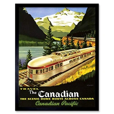 Wee Blue Coo Travel Train Rail Scenic Route Landscape Mountain Lake Canada Art Print Framed Poster Wall Decor 12X16 Inch