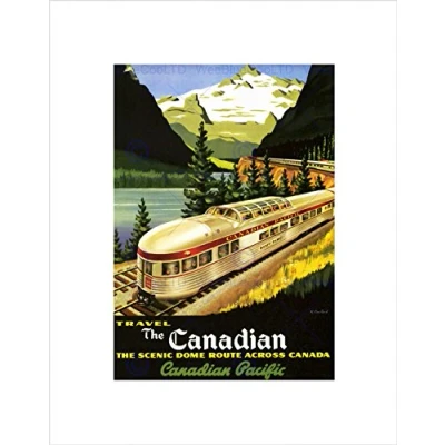 Wee Blue Coo TRAVEL TRAIN RAIL SCENIC ROUTE MOUNTAIN LAKE CANADA FRAMED PRINT B12X10354