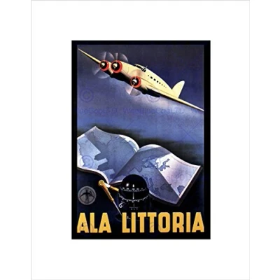 Wee Blue Coo Travel Transport Airline Aeroplane Map Atlas Italy Wall Art Print