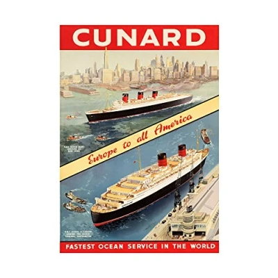 Wee Blue Coo Travel Transport Europe America Ship Cruise Liner Ocean Wall Art Print