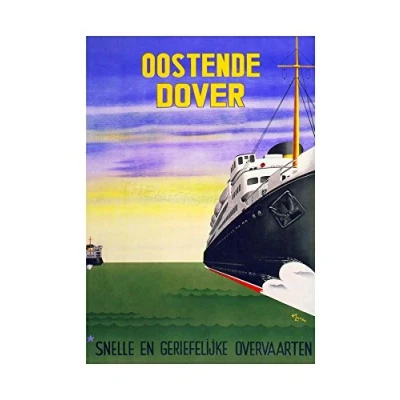 Wee Blue Coo Travel Transport Ferry Ostend Dover Belgium Ship Vintage Wall Art Print
