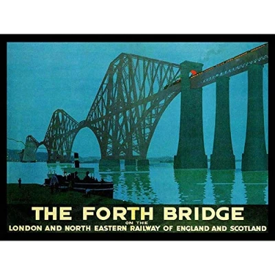 Wee Blue Coo Travel Transport Forth Bridge Scotland Rail Train Icon River Art Print Poster Wall Decor 12X16 Inch