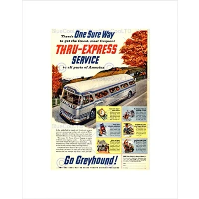 Wee Blue Coo TRAVEL TRANSPORT GREYHOUND BUS VINTAGE ADVERT BLACK FRAMED ART PRINT B12X1550