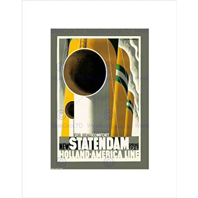 Wee Blue Coo TRAVEL TRANSPORT HOLLAND AMERICA LINE SHIP LINER FUNNEL FRAMED PRINT B12X7366