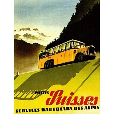 Wee Blue Coo Travel Transport Post Bus Alpine Swiss Mountain Road Pine Forest Art Print Poster Wall Decor 12X16 Inch