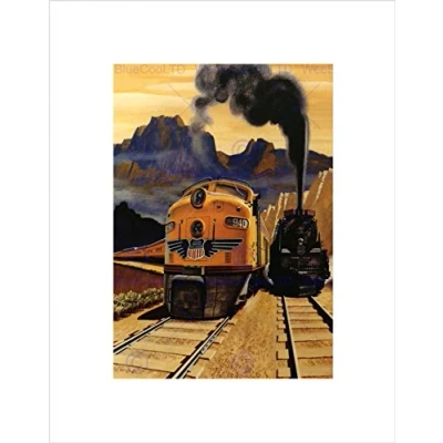 Wee Blue Coo TRAVEL TRANSPORT TRAIN RAIL TRACK STEAM DIESEL ENGINE FRAMED PRINT B12X10356
