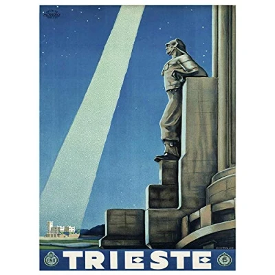 Wee Blue Coo Travel Trieste Italy Lighthouse Beam Statue Stars Sky Art Print Poster Wall Decor 12X16 Inch