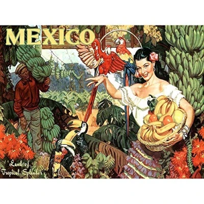Wee Blue Coo Travel Tropical Fruit Toucan Parrot Mexico Vintage Advertising Art Print Poster Wall Decor 12X16 Inch