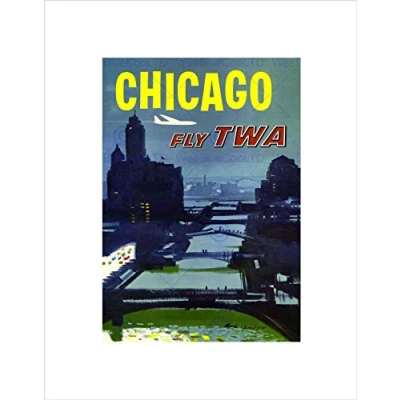 Wee Blue Coo TRAVEL TWA AIRLINE CHICAGO ILLINOIS WINDY VINTAGE ADVERT FRAMED PRINT B12X1742