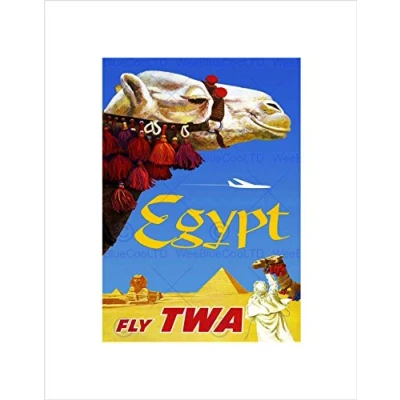 Wee Blue Coo Travel TWA Airline Egypt Camel Sphinx Pyramid Vintage Advert Art Wall Print