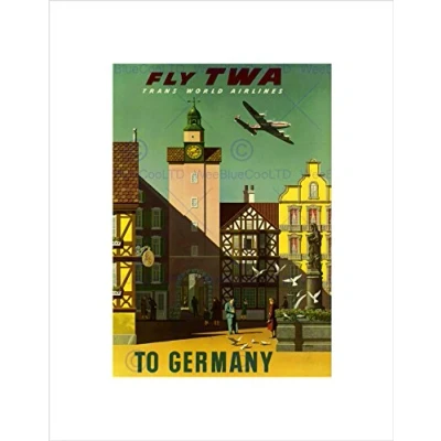 Wee Blue Coo TRAVEL TWA AIRLINE GERMANY VINTAGE ADVERT RETRO FRAMED ART PRINT MOUNT B12X1434