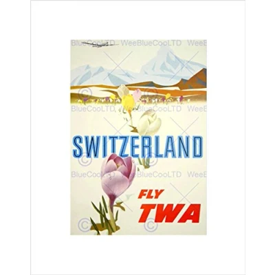 Wee Blue Coo TRAVEL TWA AIRLINE SWITZERLAND ALPINE MOUNTAIN SNOW VINTAGE ART PRINT B12X1746