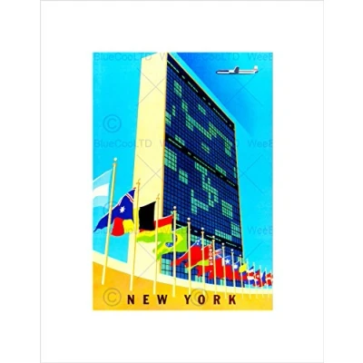 Wee Blue Coo TRAVEL UNITED NATIONS BUILDING AIRLINE AEROPLANE FRAMED ART PRINT B12X10250