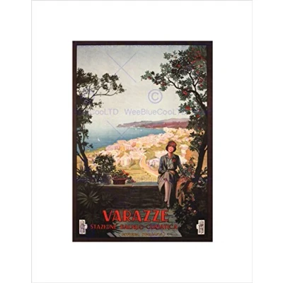 Wee Blue Coo TRAVEL VARAZZE EUROPA STROLL ITALY RIVIERA VINTAGE ADVERT FRAMED PRINT B12X1757