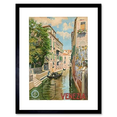 Wee Blue Coo Travel Venice Canal Gondola Romantic Italy City Picture Framed Wall Art Print