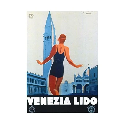 Wee Blue Coo Travel Venice Lido Piazza San Marco Italy Vintage Advert Wall Art Print