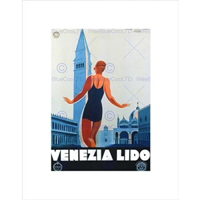 Wee Blue Coo Travel Venice Lido Piazza San Marco Italy Vintage Advert Wall Art Print