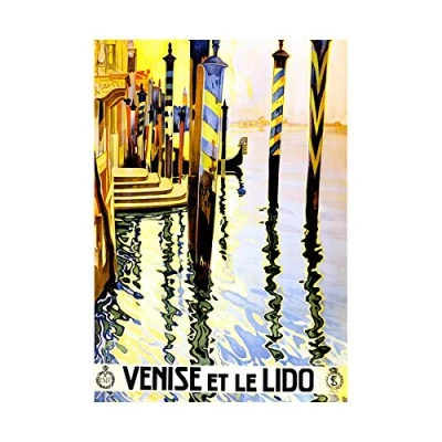 Wee Blue Coo Travel Venise Lido Venice Canal Gondola Poles Italy Wall Art Print