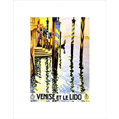 Wee Blue Coo Travel Venise Lido Venice Canal Gondola Poles Italy Wall Art Print