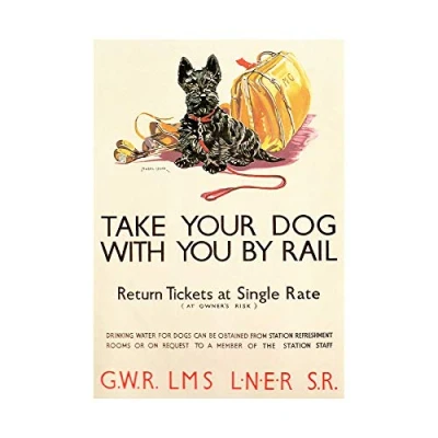 Wee Blue Coo Travel Vintage Ad Policy Dogs Rail Train Scottish Terrier Wall Art Print