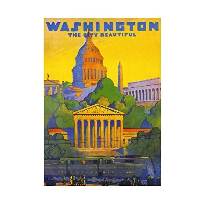 Wee Blue Coo Travel Washington Monument City Train Rail White House Wall Art Print