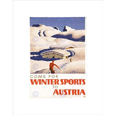 Wee Blue Coo Travel Winter Sport Austria Alpine Ski Chalet Snow Wall Art Print