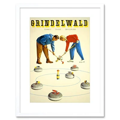 Wee Blue Coo Travel Winter Sport Curling Grindelwald Switzerland Vintage Art Framed Wall Print