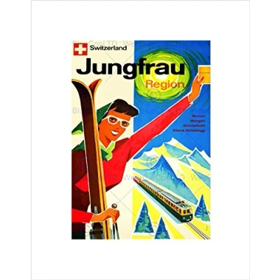 Wee Blue Coo TRAVEL WINTER SPORT JUNGFRAU SWITZERLAND SKIING TRAIN FRAMED ART PRINT B12X1786