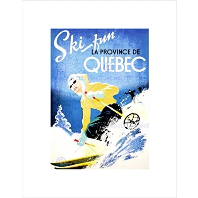 Wee Blue Coo TRAVEL WINTER SPORT QUEBEC CANADA SKI SNOW DOWNHILL FRAMED ART PRINT B12X3355