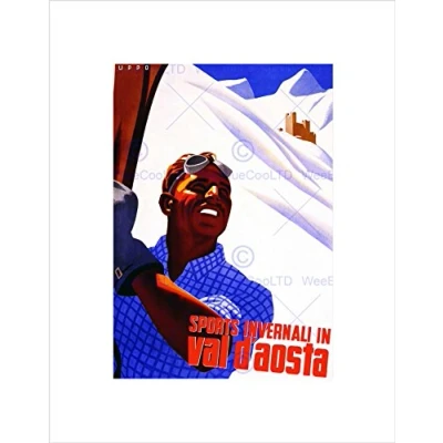 Wee Blue Coo TRAVEL WINTER SPORT SKIING VAL D'AOSTA FRANCE SNOW VINTAGE FRAMED PRINT B12X1795