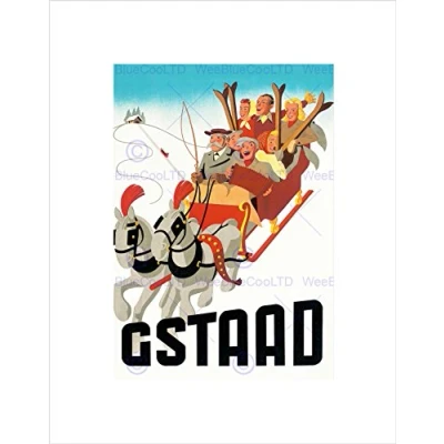 Wee Blue Coo Travel Winter Sport Snow Ski Alpine Resort Switzerland Wall Art Print