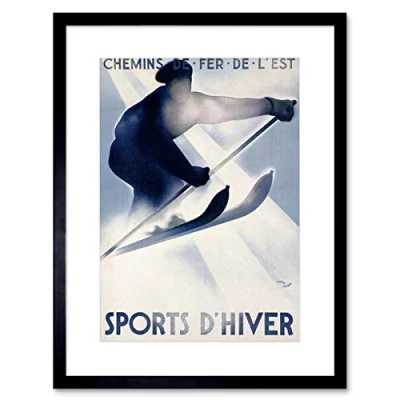 Wee Blue Coo Travel Winter Sport Snow Ski Train Railway Vosges France Framed Wall Art Print