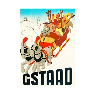 Wee Blue Coo Travel Winter Sport Swiss Alpine Resort Gstaad Sleigh Wall Art Print