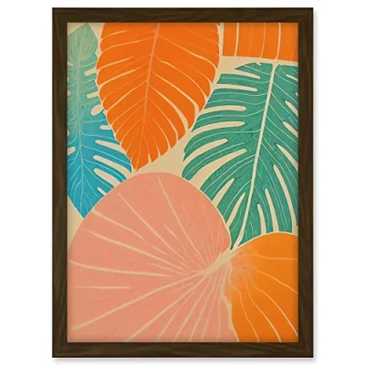 Wee Blue Coo Tropical Monstera Leaf Jungle Pastel Botanical Artwork Framed A3 Wall Art Print