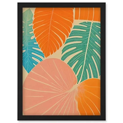 Wee Blue Coo Tropical Monstera Leaf Jungle Pastel Botanical Artwork Framed Wall Art Print A4