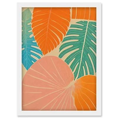 Wee Blue Coo Tropical Monstera Leaf Jungle Pastel Botanical Artwork Framed Wall Art Print A4